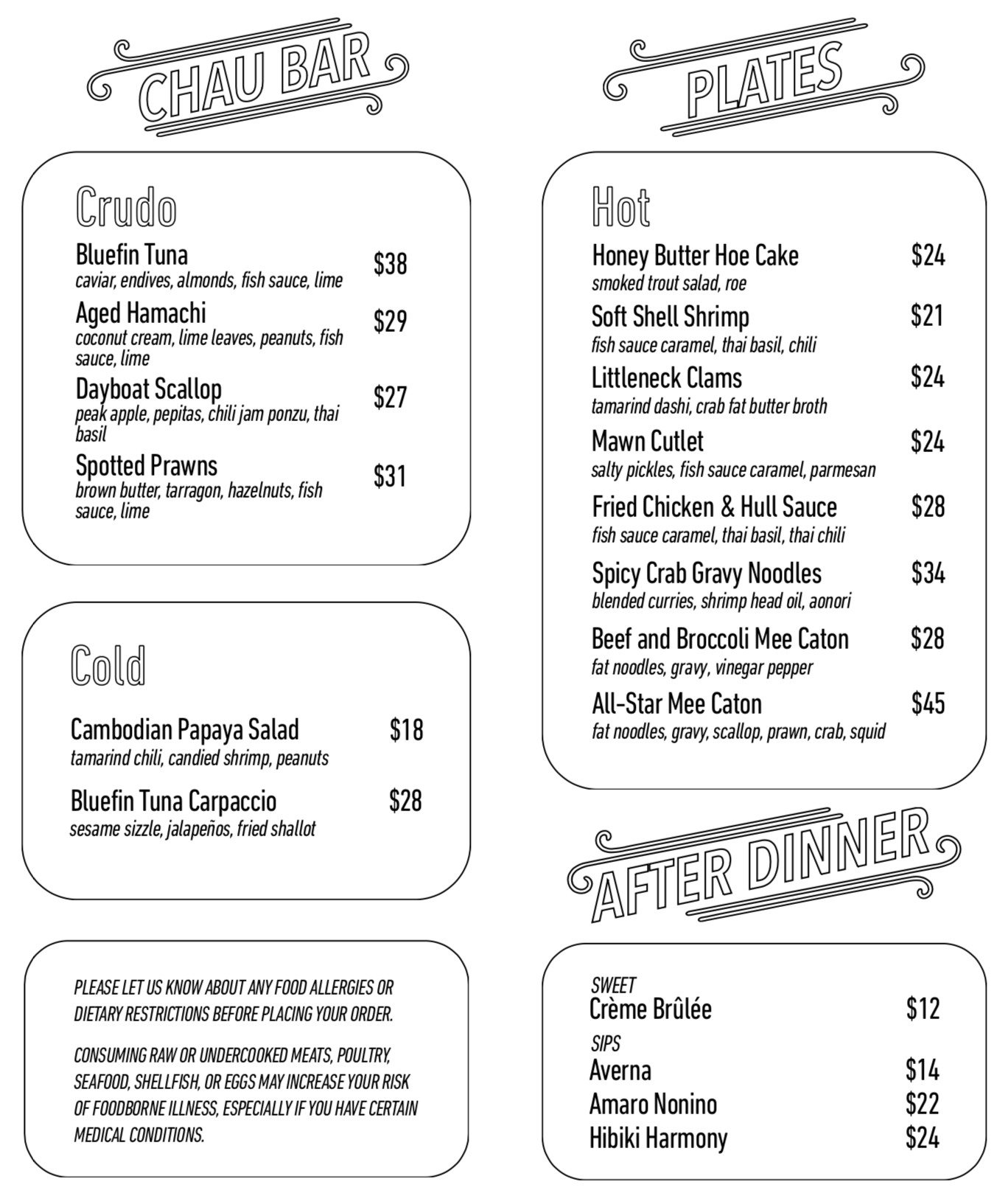 PLEASE NOTE THAT THIS IS A SAMPLE MENU, AS OUR MENU AND PRICES CHANGE FREQUENTLY